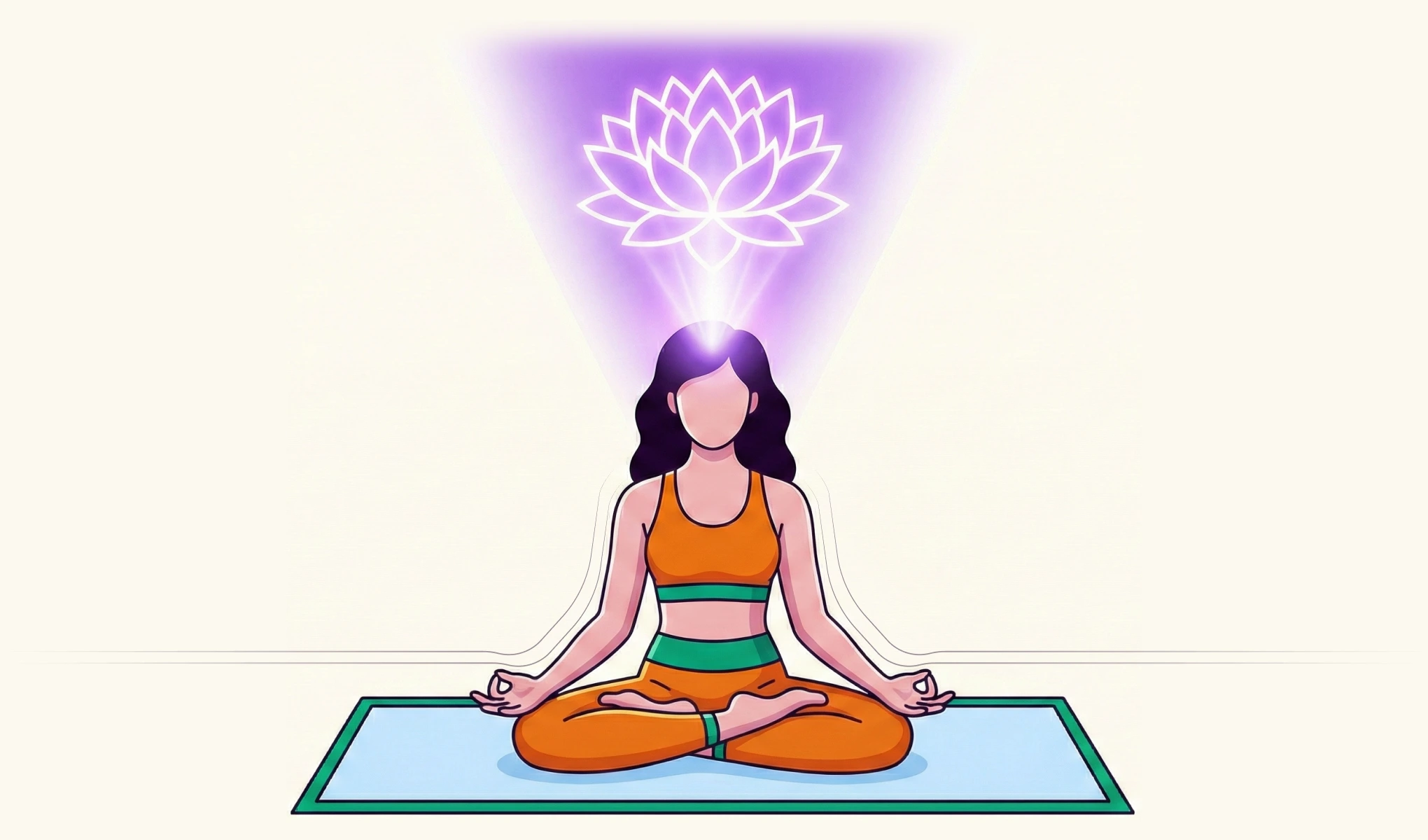 Discover the crown chakra (Sahasrara): location, meaning, blockage signs, 8 meditative poses, and consciousness practices for spiritual awakening.