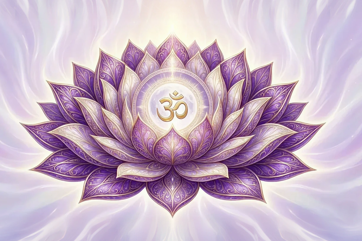 The primary mantra for the crown chakra is OM (ॐ), the primordial sound representing universal consciousness. Silent meditation is also considered a powerful practice for Sahasrara, as the crown chakra is ultimately accessed beyond sound and thought.